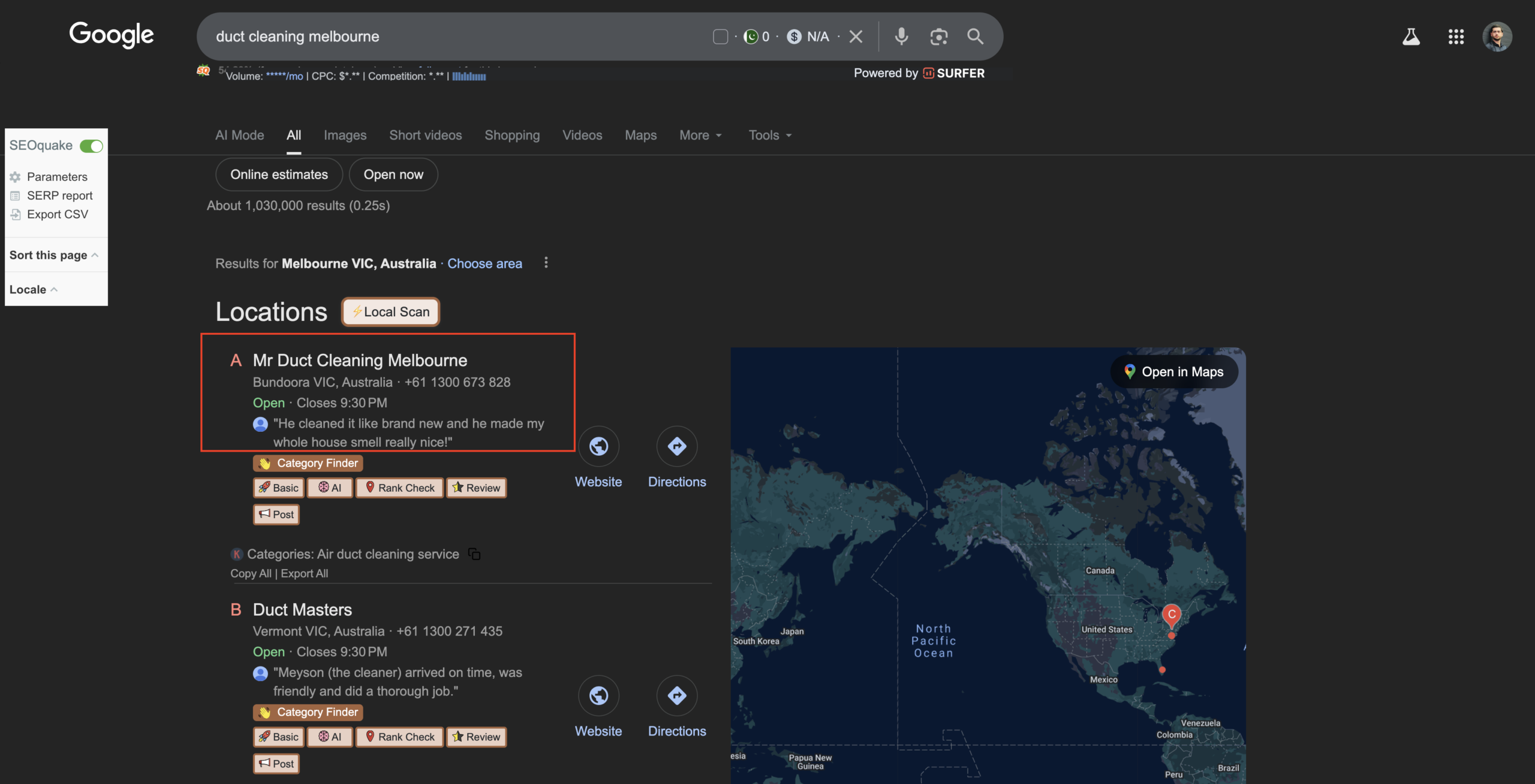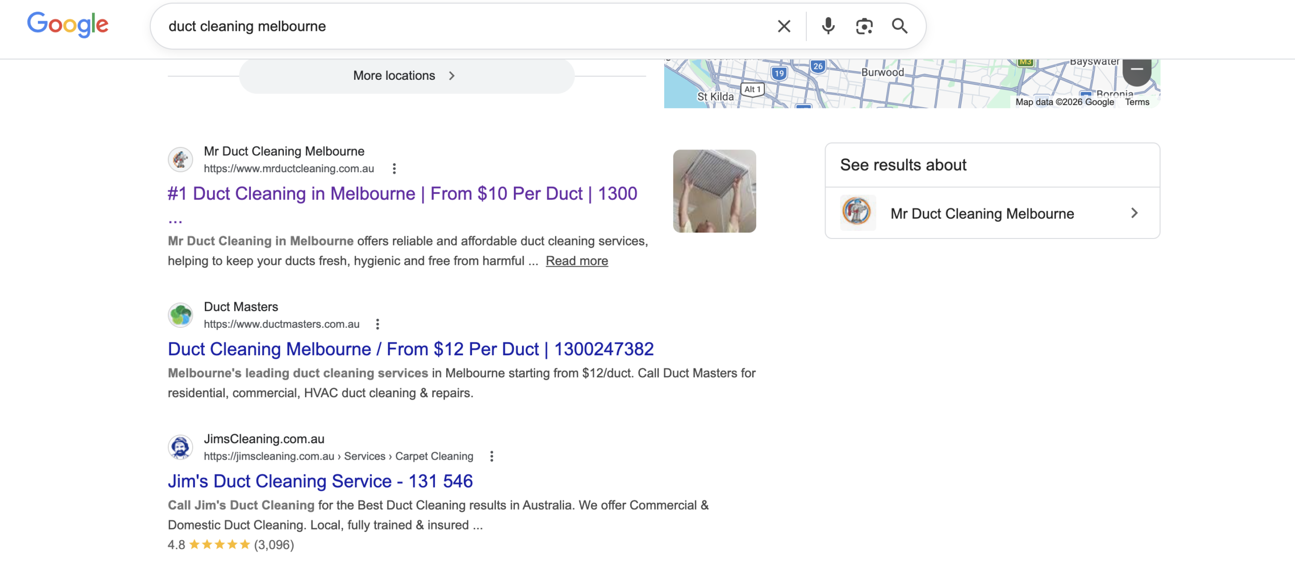 Within 6 months of implementing the SEO strategy, Mr Duct Cleaning experienced a significant boost in local visibility, resulting in an average of 30–40 new customers per day.
