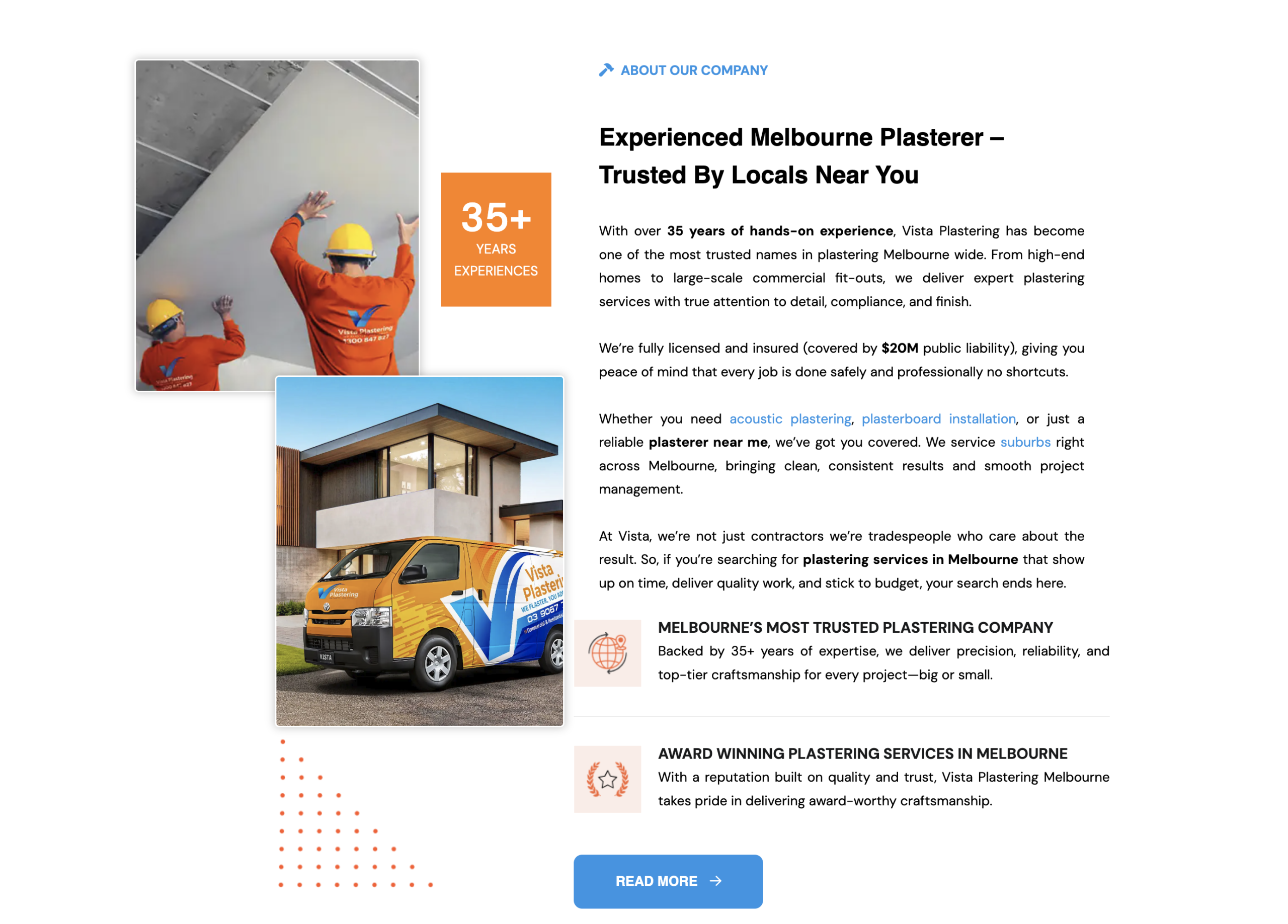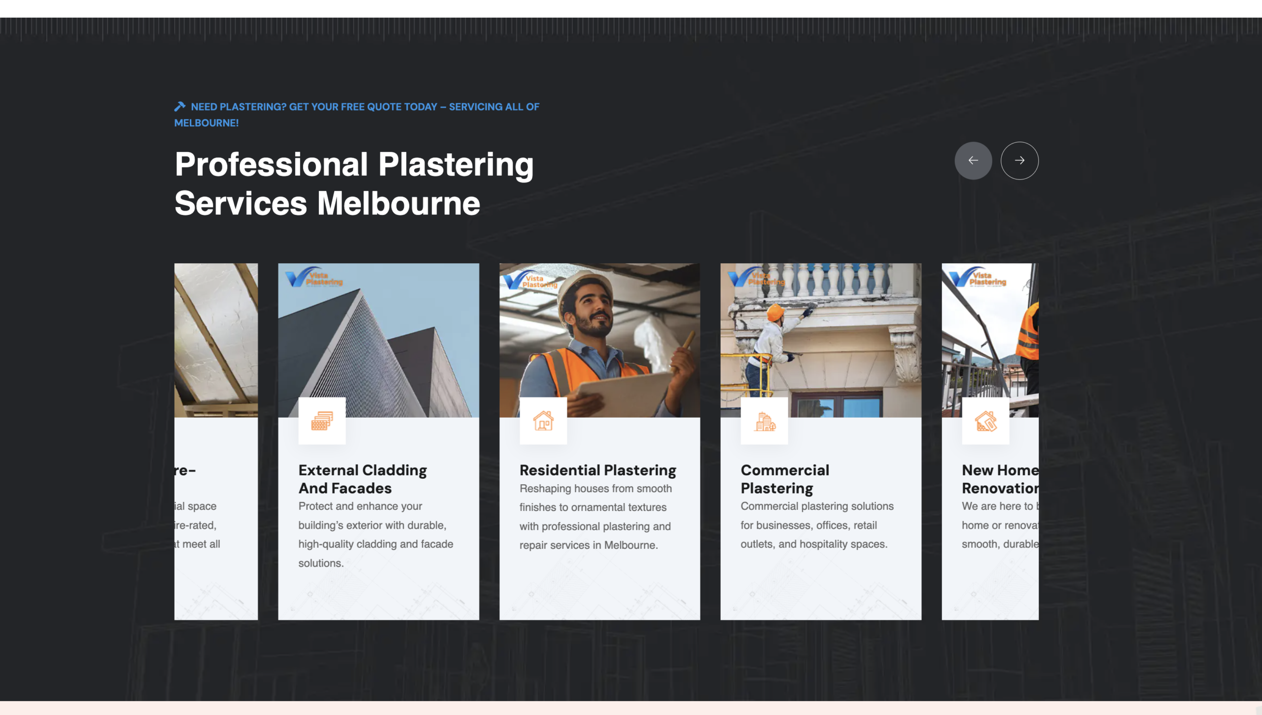 Vista Plastering Melbourne, a renowned Local plastering service provider, sought our help to revamp its online presence, improve local search visibility, and convert more website traffic into leads for plastering services. Our objective was to redesign their website for a better user experience, implement SEO best practices, and drive more organic traffic and customers to meet business goals.